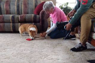 Tristan with owner Rhonda Coombs filming “Taking the Leap” / Abby the Corgi gets her moment in the spotlight